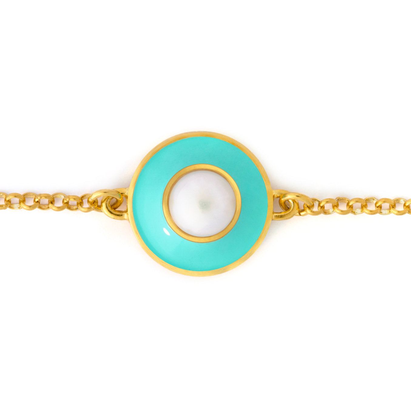 The Teddy bracelet - 24K gold-plated chain for everyday elegance. Hand-made in Italy, the charm is coated with enamel and decorated with pearl mabe.